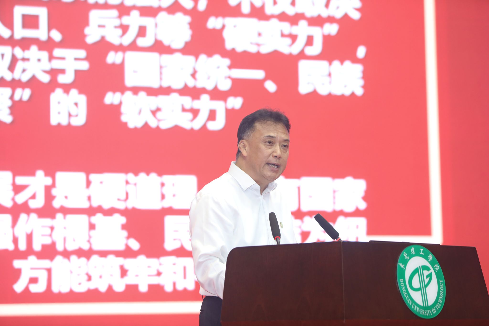 马宏伟带领同学们回顾了中国人民抗日战争取得的伟大胜利,深入剖析了其中蕴含的历史经验,并以“志”“品”“勇”“韧”四个字为核心,结合先烈为国献身的动人事迹、莞工人奋发向上的鲜活案例和翔实的数据,深刻阐释了抗战精神的丰富内涵。