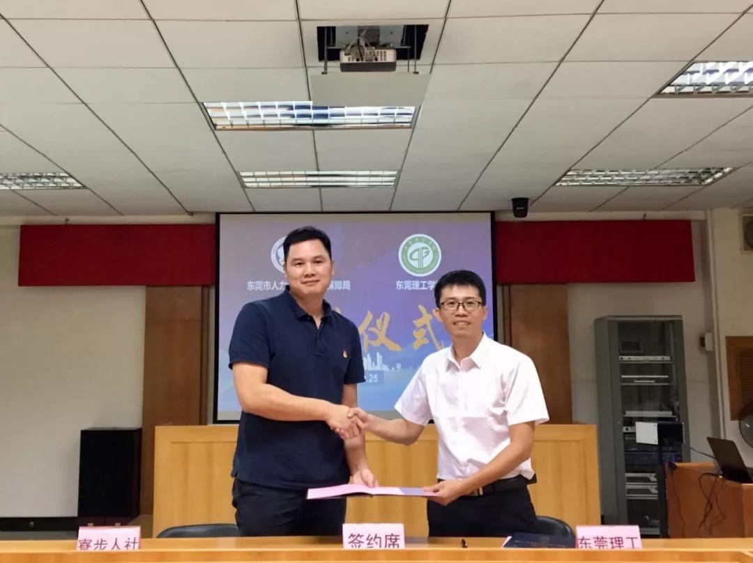 10月25日上午,东莞市人力资源和社会保障局寮步分局与我校经济与管理学院共建大学生校外实践教学基地签约仪式在寮步人社分局举行。寮步人社分局局长刘俊桢、我校经管学院副院长黎伟等出席签约仪式。刘俊桢与黎伟分别代表双方签订了实践协议并进行授牌仪式。