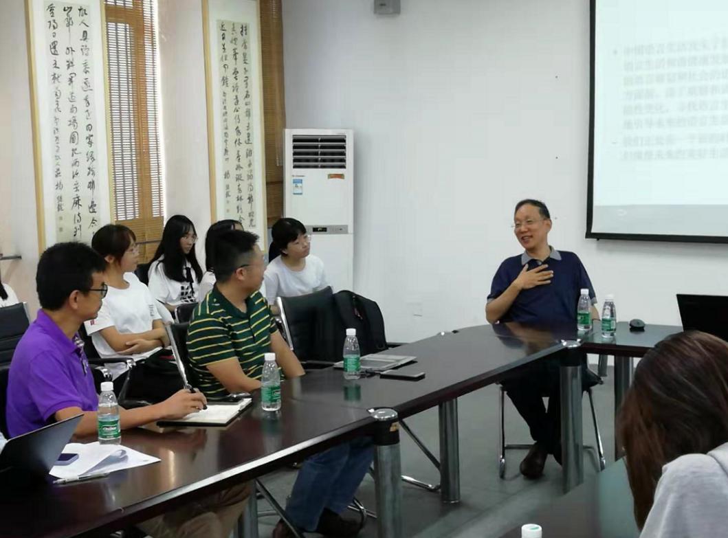 讲座结束后,郭熙教授与在场师生进行了深入的交流。郭教授还就我院汉语言文学专业建设、课题申报、论文发表等提出建议。郭教授强调研究一定要有服务国家的意识,要有问题意识。多带学生参加各类项目,提升学生的综合能力。最后,张斌华老师对郭熙教授的讲座进行了简单总结:“郭教授的讲座为我们提供了最前沿的研究角度,拓宽了我们的研究视野,给了我们很多启示。讲座结束后,老师们就自己的研究兴趣与郭熙教授进行了深入交流。